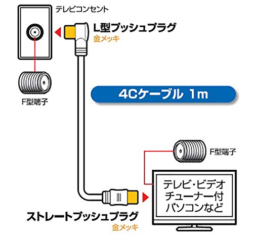 日本アンテナ テレビ接続ケーブル S4C 4K8K対応 1m L型プラグ-S型プラグ ホワイト CS4GLS1C
