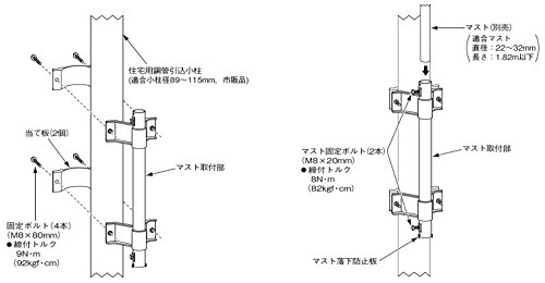 マスプロ電工 住宅用鋼管引込小柱用マスト取付金具 SKPM32