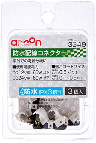 エーモン(amon) 防水配線コネクター(防水性能IPX3相当) 電源側AV(S)0.6~1sq/分岐側AV(S)0.1~0.5sq 3個入 3349