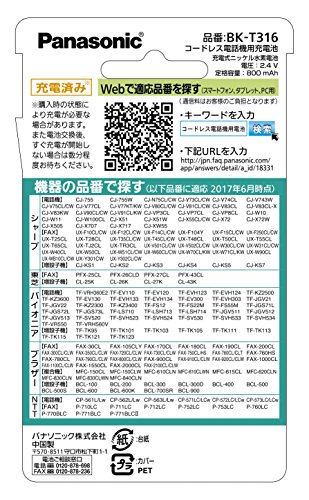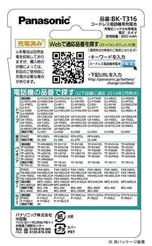 パナソニック 充電式ニッケル水素電池(コードレス電話) BK-T316