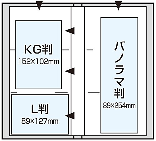 台紙:ポリプロピレン製L・KG・パノラマ判兼用3段ポケット2層透明台紙48枚( 写真収納枚数:L判288枚、またはKG判・パノラマ判96枚)