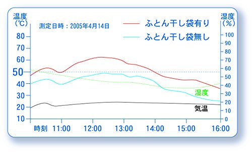 ふとんはダニが好む場所です。 ダニは放置しておくとどんどん繁殖し、人体に影響を及ぼすと言われています。「ふとん干し袋」は太陽熱をグングン吸収して、防虫・乾燥効果を高めます。
