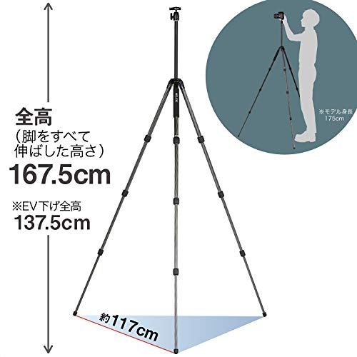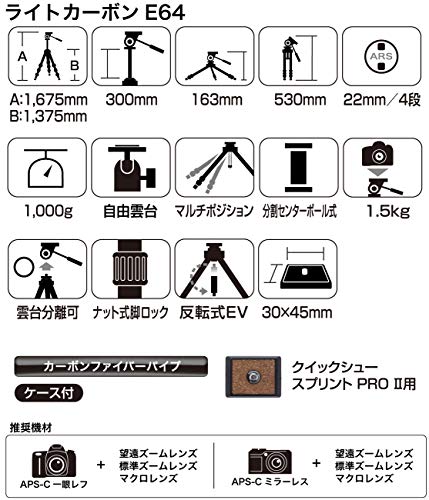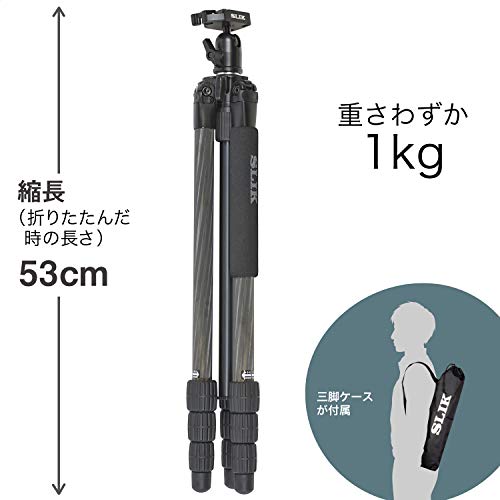 SLIK カーボン三脚 ライトカーボン E64 4段 ナットロック式 22mmパイプ径 自由雲台 クイックシュー式 106884