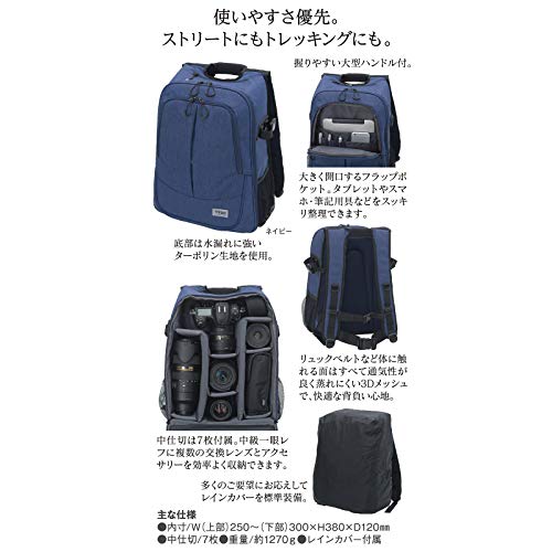エツミ カメラリュック フィールドザックSLR 11L ネイビー VE-4216