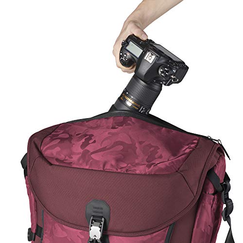 大容量のカメラ機材を収納し速写性に優れたメッセンジャーバッグ型カメラバッグ。 フラップを開くことなく天面ファスナーからカメラを取り出せる速写設計。