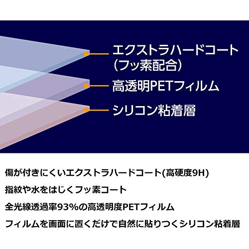 エクストラハードコートによりガラスと同じ硬度9Hでありながら割れに強い安心フィルム。ガラスのような透明度と硬度をフィルムで実現。