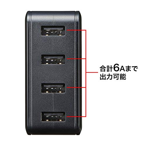 サンワサプライ USB充電器 4ポート 合計6A 4台同時充電可能 高出力タイプ ACA-IP54BK