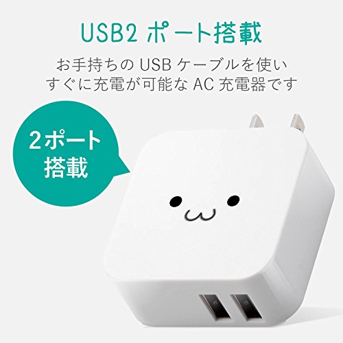 エレコム 充電器 ACアダプター 折畳式プラグ USBポート×2 (2.4A出力) ホワイトフェイス
