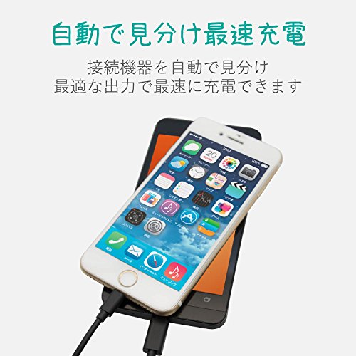 合計最大出力2.4Aの高出力タイプなので、スマートフォンやタブレットの急速充電が可能です。