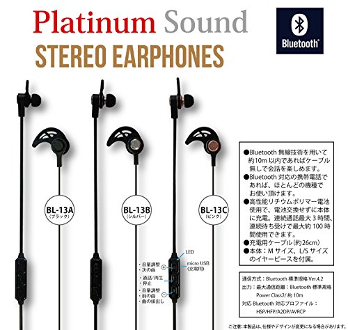 グルマンディーズ Bluetooth ステレオイヤホン(アルミタイプ) ブラック bl-13a