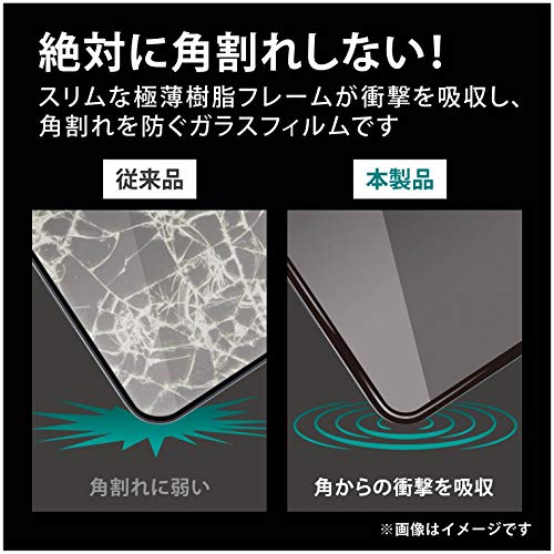 極薄硬質フレームが角からの衝撃を吸収する、iPhone mini用フレーム付き液晶保護ガラスです。