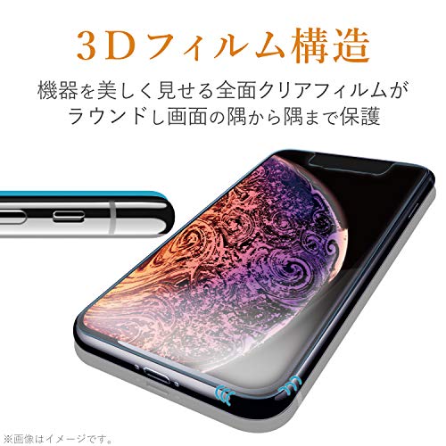端末のガラス面と同じラウンド形状を再現した3D設計で、画面の端まで保護する傷リペアタイプのiPhone 11 Pro、iPhone XS、iPhone X用フルカバーフィルムです。