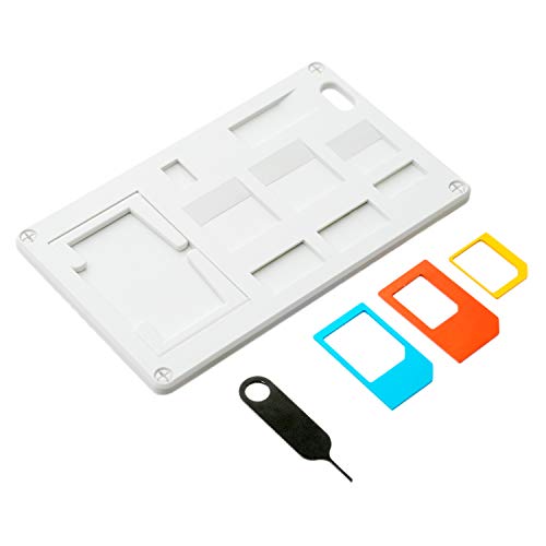 SIMカードのサイズを変換するアダプタを、それらを収納するケースのセットです。