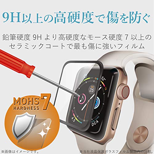 鉛筆硬度9Hより高硬度なモース硬度(鉱物硬度規格)7以上のセラミックコートを採用した、最も傷に強いApple Watch SE、Series 6、5、4 [44mm]用ガラスフィルムです。