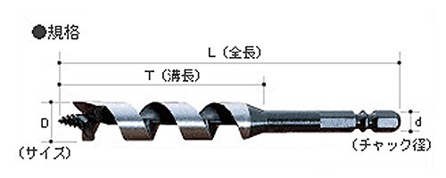 サイズD:9.5mm 全長L:110mm 溝長T:60mm チャック径d:6角軸 6.35mm