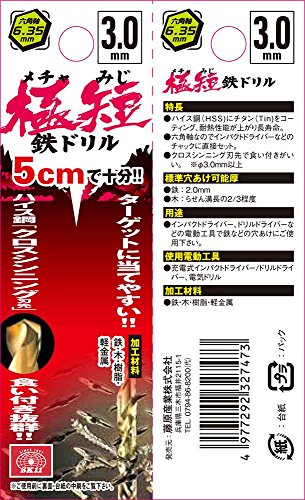 SK11 六角軸 鉄ドリル 極短 メチャみじ 3.0mm
