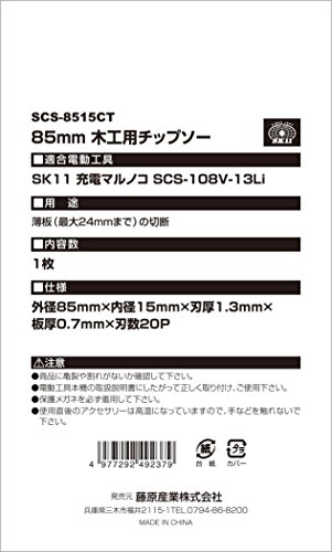 SK11 充電マルノコ SCS-108V-13Li用 85mm 木工用チップソー SCS-8515CT