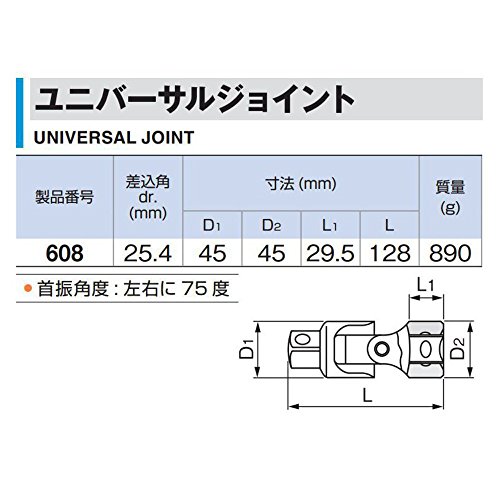 トネ(TONE) ユニバーサルジョイント 608 差込角25.4mm(1")