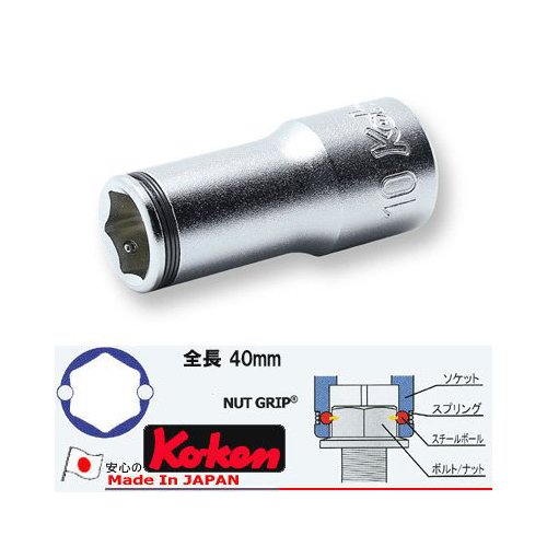 コーケン グリップソケット 3/8(9.5mm)SQ. ナットグリップセミディープソケット 8mm 3350×-8