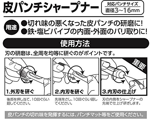 用途:切れ味の悪くなった皮パンチの研磨に、鉄・塩ビパイプの内面・外面のバリ取りに