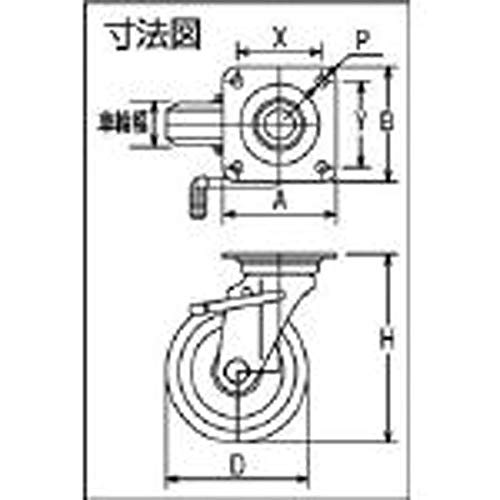 許容荷重(kgf):120車輪径D(mm):75車輪幅(mm):32取付高H(mm):103取付座A×B(mm):82×82取付ピッチX×Y(mm):63×63取付穴径P(mm):9.5質量(kg):0.69許容荷重(daN):117