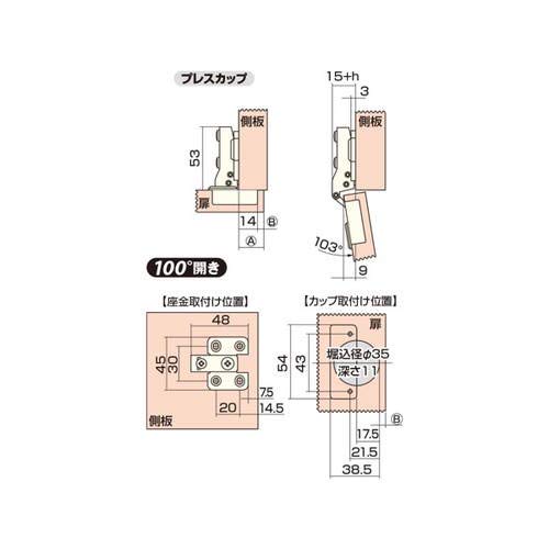 アイワ スライド丁番 35mm 全かぶせ キャッチ無 00113978-1 AP-1032C