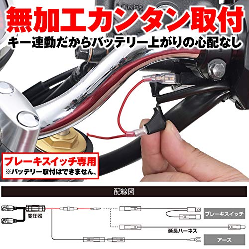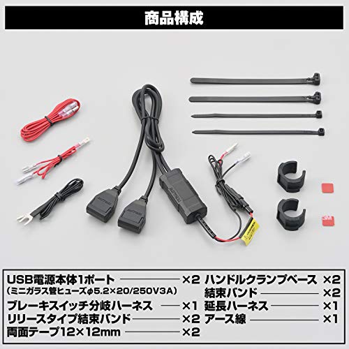 デイトナ バイク専用電源 USBx2 USB2口合計5V/4.8A (1口最大5V/2.4A) ブレーキスイッチ割り込ませタイプ メインキー