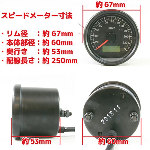 ライズコーポレーション LEDスピードメーター ブラックボディ/ブラックパネル 電気式 240km/h 60mm バイク オート