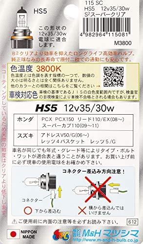 ・商品名:M&H / 高効率ハロゲンバルブ HS5 12V 35/30W スーパークリア / 115SC