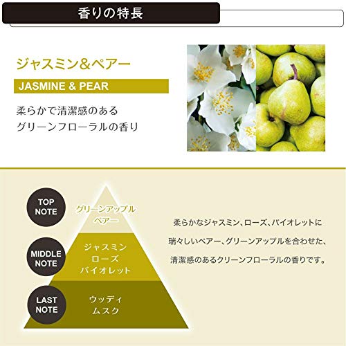 天然香料を配合し、自然でやさしく、心地よい香りが特長です。植物や果実が持つ華やかさや、瑞々しい素材の香りを感じることができます。素材を活かしたナチュラルな香りなので、お子様や芳香剤の香りが苦手な方にも安心してお使いいただくことができます。