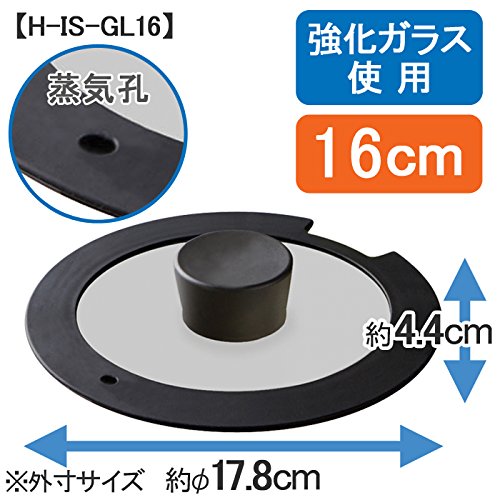 アイリスオーヤマ フライパン ガラス蓋 ふた 「ダイヤモンドコートパン」 16cm ブラック H-IS-GL16