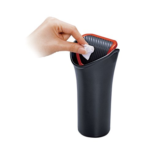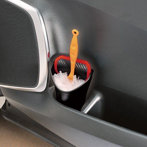 カーボン調+アクセントカラ-デザイン、ドアポケットに納まるボトルタイプダストパック