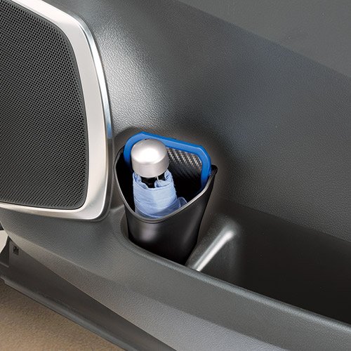 カーボン調+アクセントカラ-デザイン、ドアポケットに納まるボトルタイプダストパック