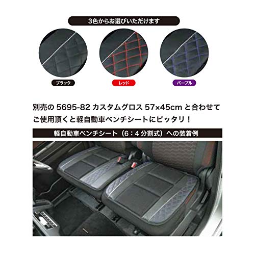 軽ベンチシート(6:4分割式)の助手席にもピッタリ。別売の5695-82 カスタムグロス 57×45cm軽ベンチ(運転席用)とあわせて使用すれば軽ベンチシートにピッタリ装着することができます。