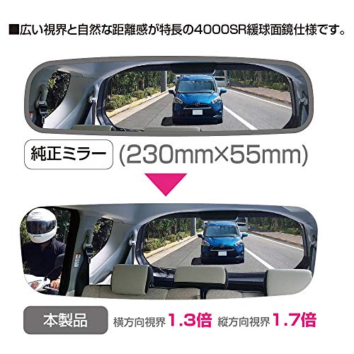【フチがないフレームレスの曲面鏡ミラー】広視野と距離感を確保した4000SR緩曲面タイプです。