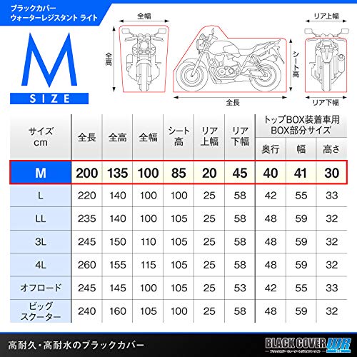 デイトナ バイクカバー ブラックカバーWR Lite M トップケース装着車用 耐水圧20,000mm ウォーターレジスタント