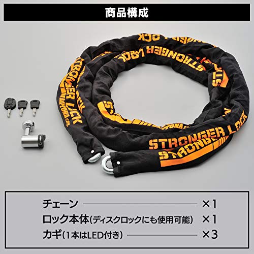 | 商品名 | デイトナ バイク用 盗難抑止ロック チェーンロック 4.0m 12mm径チェーン 夜間に便利なLEDキー1本付属 ストロンガ |