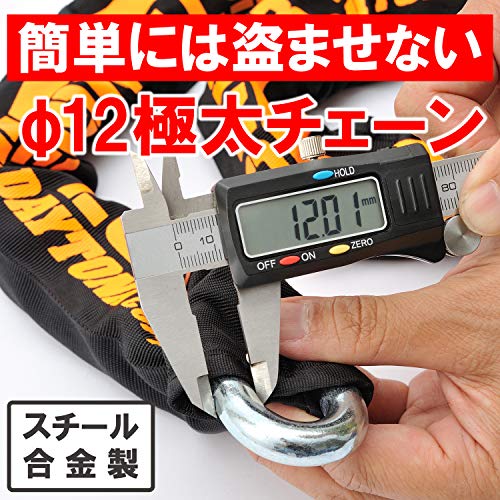 デイトナ バイク用 盗難抑止ロック チェーンロック 4.0m 12mm径チェーン 夜間に便利なLEDキー1本付属 ストロンガ