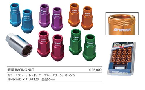 WORK(ワーク) ロングタイプロックナットセット 軽量レーシングナット オレンジ 19HEX M12×P1.5 全長50mmWORKRANUT-OR15