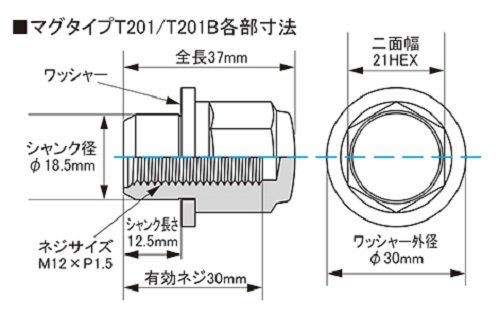 KYO-EI(協永産業)トヨタ純正平座アルミホイール専用マグタイプナット 21HEX M12×P1.5 クロームメッキ 20個入り T201-