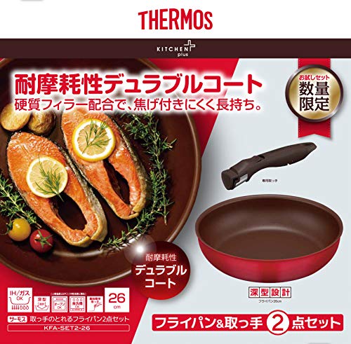 サーモス デュラブルコート 取っ手のとれるフライパン 26cm IH対応 レッド + 専用取っ手付き KFA-SET2-26 R