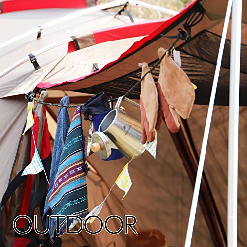 クリップを必要としないツイストタイプで軽量の物干しやテント内の小物の整理に便利。コンパクトに収納できる。