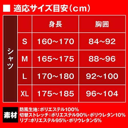 【材質】防風生地部:ポリエステル100%、ストレッチ生地部:ポリエステル90%/ポリウレタン10%