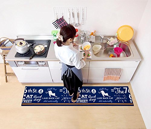 オカトー(Okato) キッチンマット Laidback Cat サイズ/W240×D45×厚さ0.8cm
