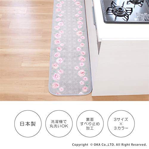 オカ(OKA) キッチンマット グレー 約45cm×240cm ロイヤルコレクション チェルシー (バラ エレガント)