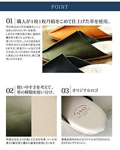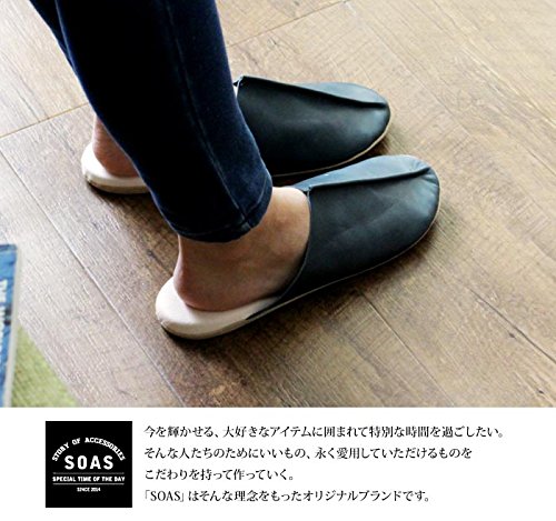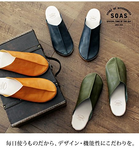 日本製 本革 ルームシューズ SOAS (M, ブルー)
