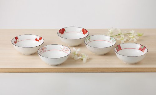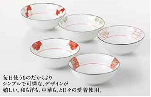 西海陶器 波佐見焼 赤絵絵変り 小鉢 5個セット 直径12cm (化粧箱入) 31931