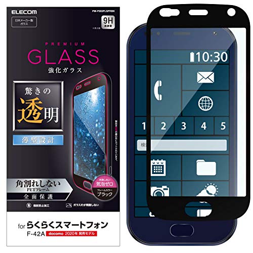 エレコム らくらくスマートフォン 全面保護 フィルム 強化ガラス フレーム付 PM-F203FLGFRBK