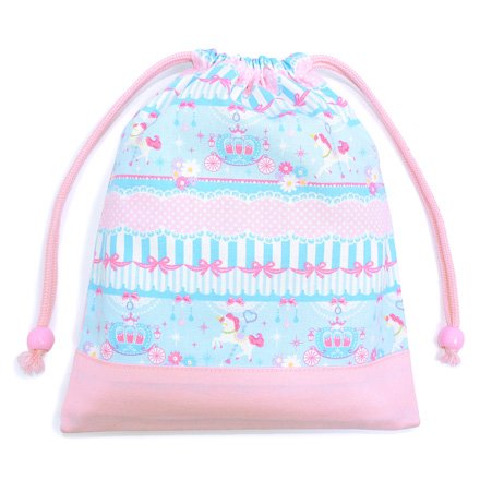 巾着(給食袋) レースチュールとメリーゴーランド(ライトブルー) N7007400