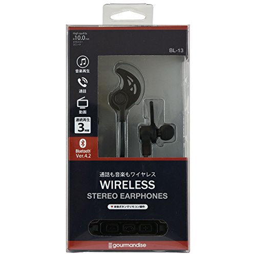 グルマンディーズ Bluetooth ステレオイヤホン(アルミタイプ) ブラック bl-13a